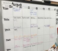 Last week was the first week back to school so I broke down and purchased a white board calendar. It’s really great. All of our appointments related to work, school, sports, meetings, etc. are all in one place. We color coded everyone and although not Pinterest worthy, it works!